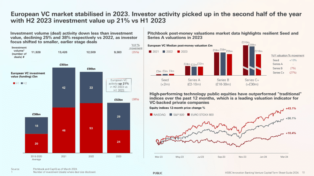 - ClimateTech and AI saw the greatest % increase share of total term sheets. Both industries combined, it amounted to 20% – a sharp growth from 9% in 2022.